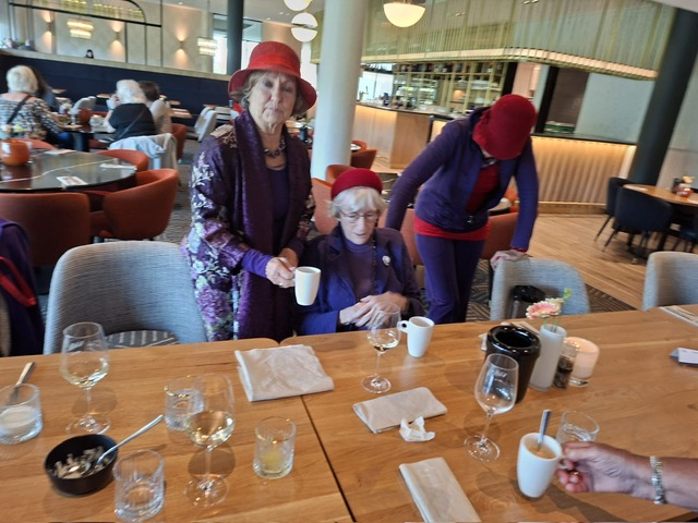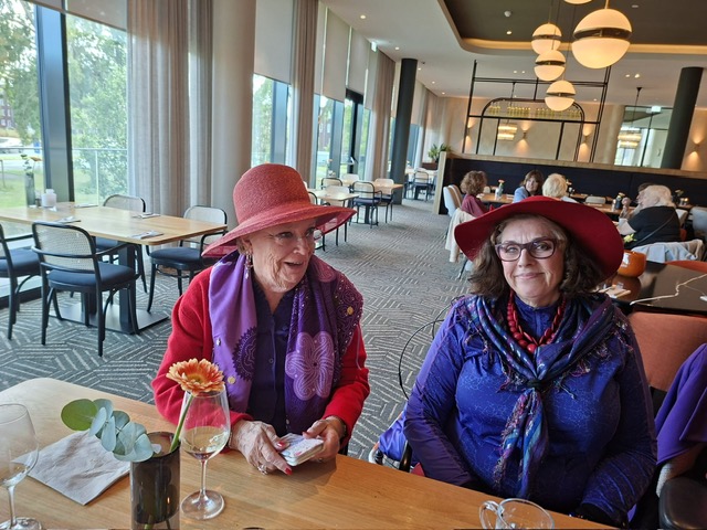 Vandaag heeft zij een lunch georganiseerd bij Van der Valk in Schiedam, dat is vlak bij haar in de buurt zodat zij daar eenvoudig kan komen.